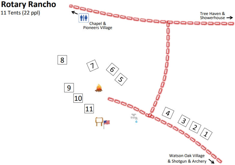 The Rotary Rancho campsite is named after the Rotary Club whose members provided both time and materials to make Royaneh a better place. The camp is located on the hillside above the Pioneers Village and is a great location for catching the sun rays.